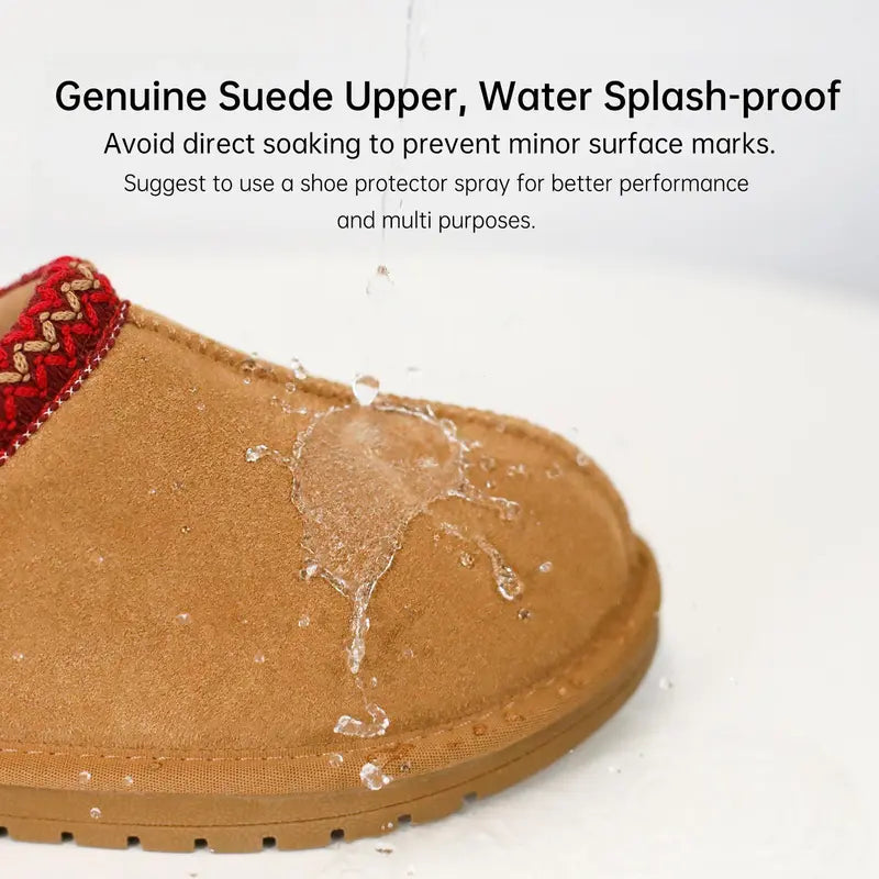Made with premium waterproof suede and lined with ultra soft cloud fleece, these booties keep your feet warm, dry, and comfortable all day. Designed for everyday wear, they combine cozy indoor comfort with outdoor durability. Lightweight, flexible, and slip resistant for any weather.